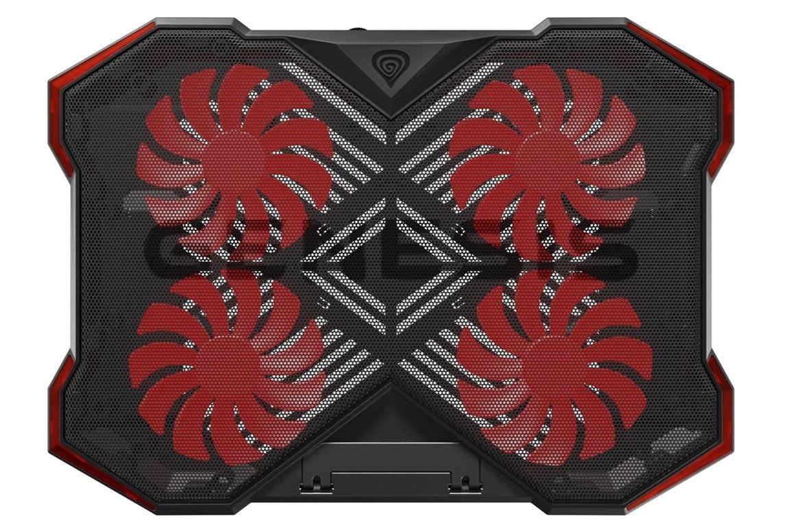 Chladicí podložka Genesis Oxid 260 je vybavena čtyřmi velkými ventilátory pro účinné chlazení. Jejich umístění zaručuje rovnoměrné chlazení notebooku a v závislosti na pracovním zatížení a teple, které zařízení generuje, můžete zvolit optimální rychlost ventilátorů.
