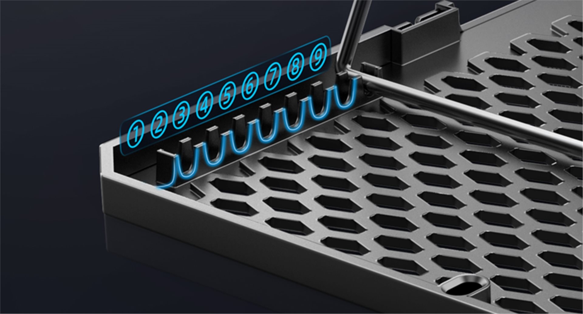 Chladicí podložka EVOLVEO Ania 9 RGB disponuje možností polohování. Je zde celkem 9 různých poloh, a to až do výše 210 mm. Každý uživatel si tak najde optimální polohu.