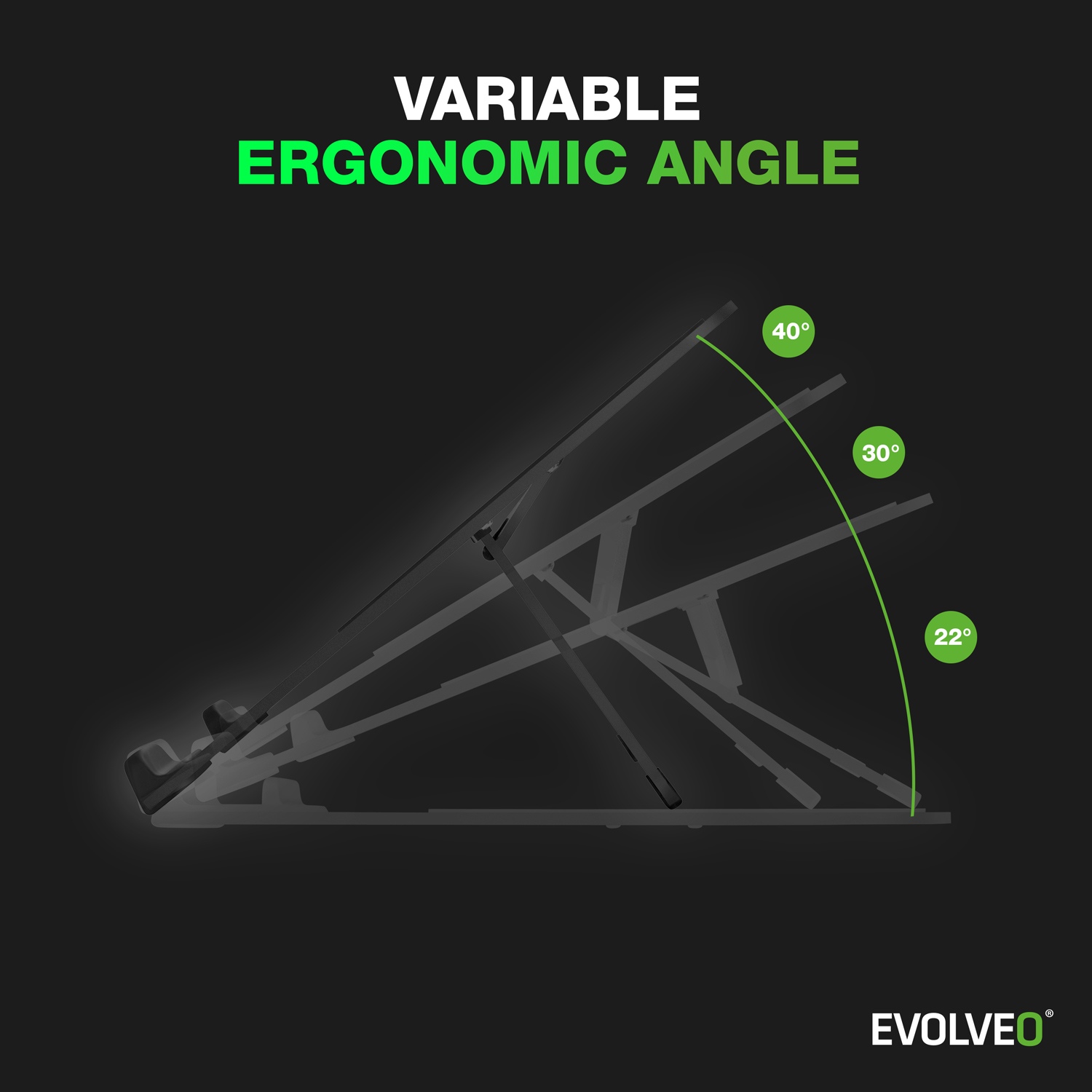 Notebook na tomto hliníkovém podstavci si můžete naklopit do tří pevně daných úhlů – 22°, 30°, nebo 40°. Nejde přitom o čísla vycucaná z prstu, ale o pečlivě promyšlené úhly, z nichž každý odpovídá jinému stylu používání: od pohodového brouzdání po internetu až po soustředěnou práci nebo intenzivní herní seance. Konstrukce podstavce je navržená tak, aby podpořila správné držení těla, ulevila krční páteři a zmírnila únavu očí. Místo shrbeného sezení nad notebookem máte najednou k dispozici stabilní základnu pro práci či hraní, která se vám přizpůsobí.