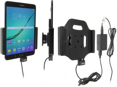 Držák pro tablet Samsung Galaxy Tab S2 8.0 bez pouzdra, se skrytým napájením, které se instaluje pod palubní desku. Držák je velmi pevný, telefon se v něm neklepe a nevibruje. Držák má kloub, díky kterému může být mobilní telefon kdykoliv jednoduše natočen na šířku nebo na výšku nebo naklopen. Držák se upevňuje na Brodit ProClip.