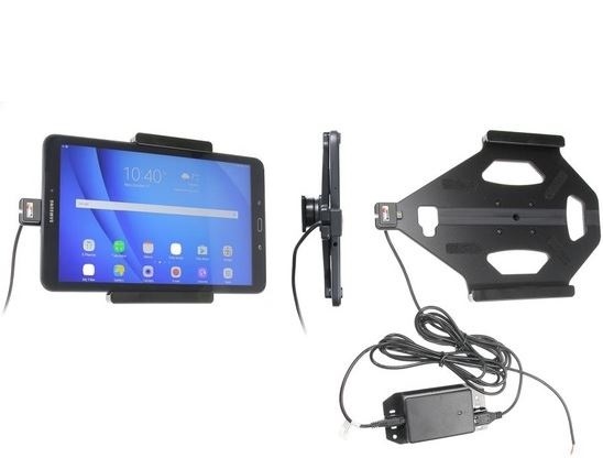 Držák na tablet Samsung Galaxy Tab A 10.1 (2016) má skryté nabíjení v palubní desce 12/24V a je určen pro tablet bez pouzdra. Držák je velmi pevný, tablet se v něm neklepe a nevibruje. Držák má kloub, díky kterému může být tablet kdykoliv jednoduše natočen na šířku nebo na výšku nebo naklopen. Držák se upevňuje na konzoli na hlavovou opěrku nebo na Brodit ProClip.