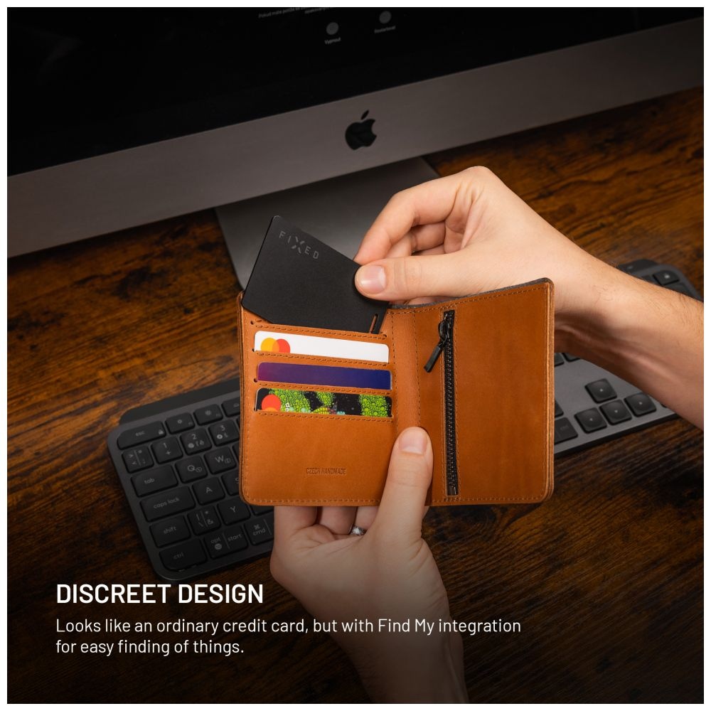 Lokátor FIXED Tag Card s podporou systému iOS je spolehlivým pomocníkem pro sledování vašich osobních věcí. Díky lokátoru s certifikací Apple Find My kartu snadno spárujete s aplikací Najít, kde můžete okamžitě sledovat její aktuální polohu a případně ji vyhledat pomocí zvukové signalizace. Funkce zvukové signalizace vás zároveň upozorní, pokud se od lokátoru vzdálíte. Již se tak nestane, že byste zapomněli peněženku doma či v restauraci. S rozměry kreditní karty a tloušťkou pouhých 1,7mm perfektně zapadne do každé peněženky, kapsy batohu nebo kamkoliv, kam by klasický lokátor nebylo možné přichytit či vložit. Zvýšenou odolnost lokátoru zajišťuje jednolité lisované tělo a standard IP67, díky kterému karta odolává vniknutí prachu a vody. Karta je plně kompatibilní se všemi typy bezdrátových nabíječek, včetně těch MagSafe a na jedno nabití vydrží až 3 měsíce. Když kapacita klesne, LED indikátor vás včas upozorní, aby byl lokátor vždy plně připraven. Součástí karty je praktický otvor pro uchycení poutka. S lokalizační kartou FIXED Tag Card budete mít své cennosti vždy pod kontrolou.